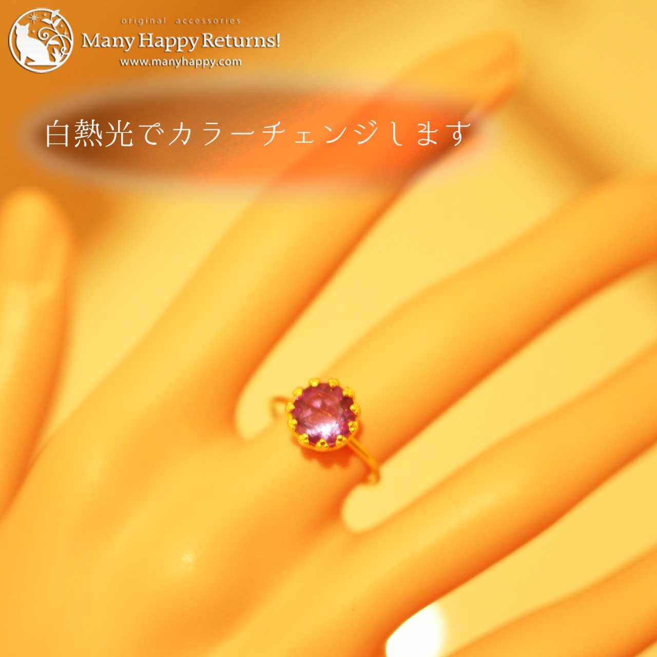j-350 前向きになる気持ちをサポート☆カラーチェンジフローライトラウンドブリリアント☆シルバー925ゴールドコートリング ネコポス送料無料