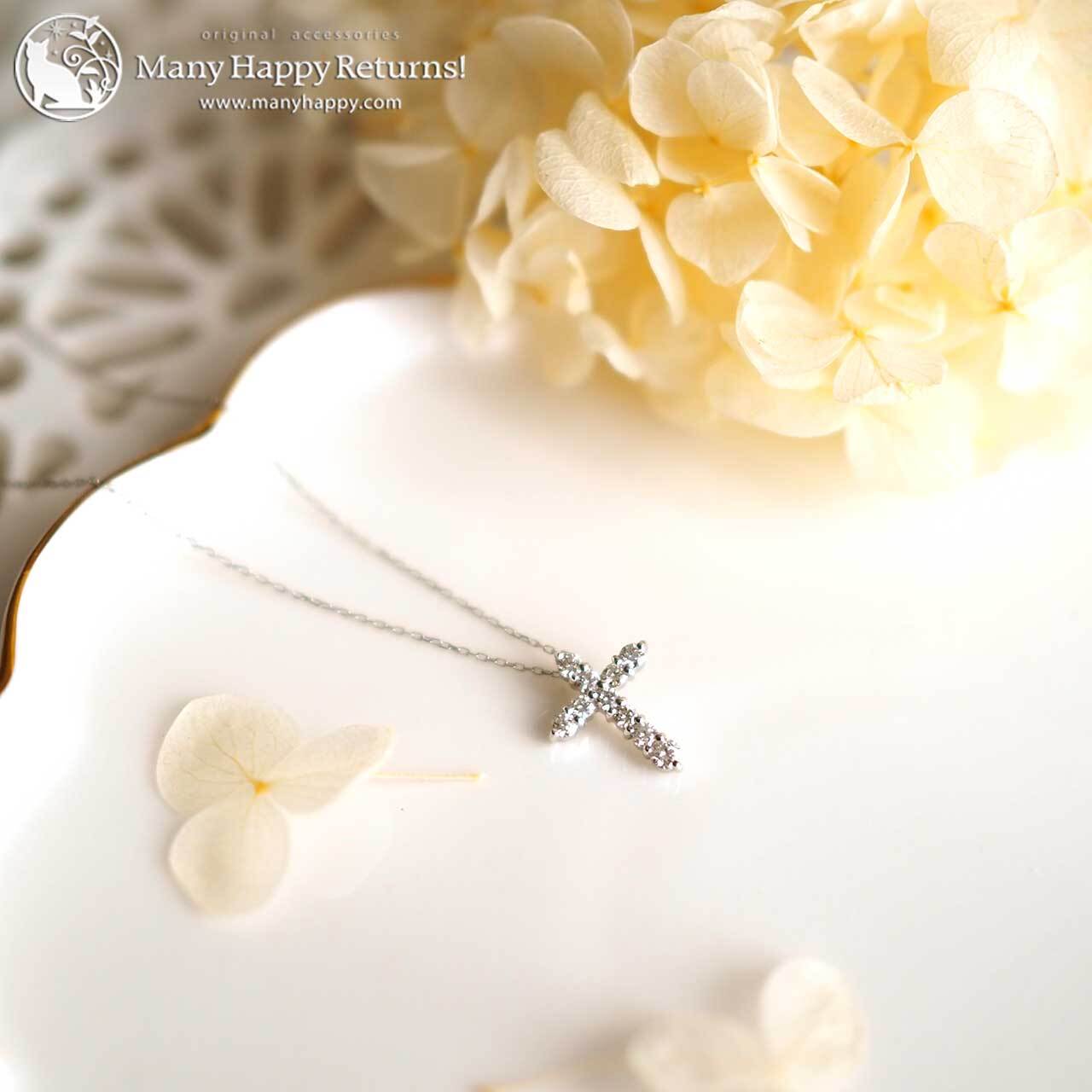 程よい大きさのクロスで、胸元でダイヤモンドが輝きます。