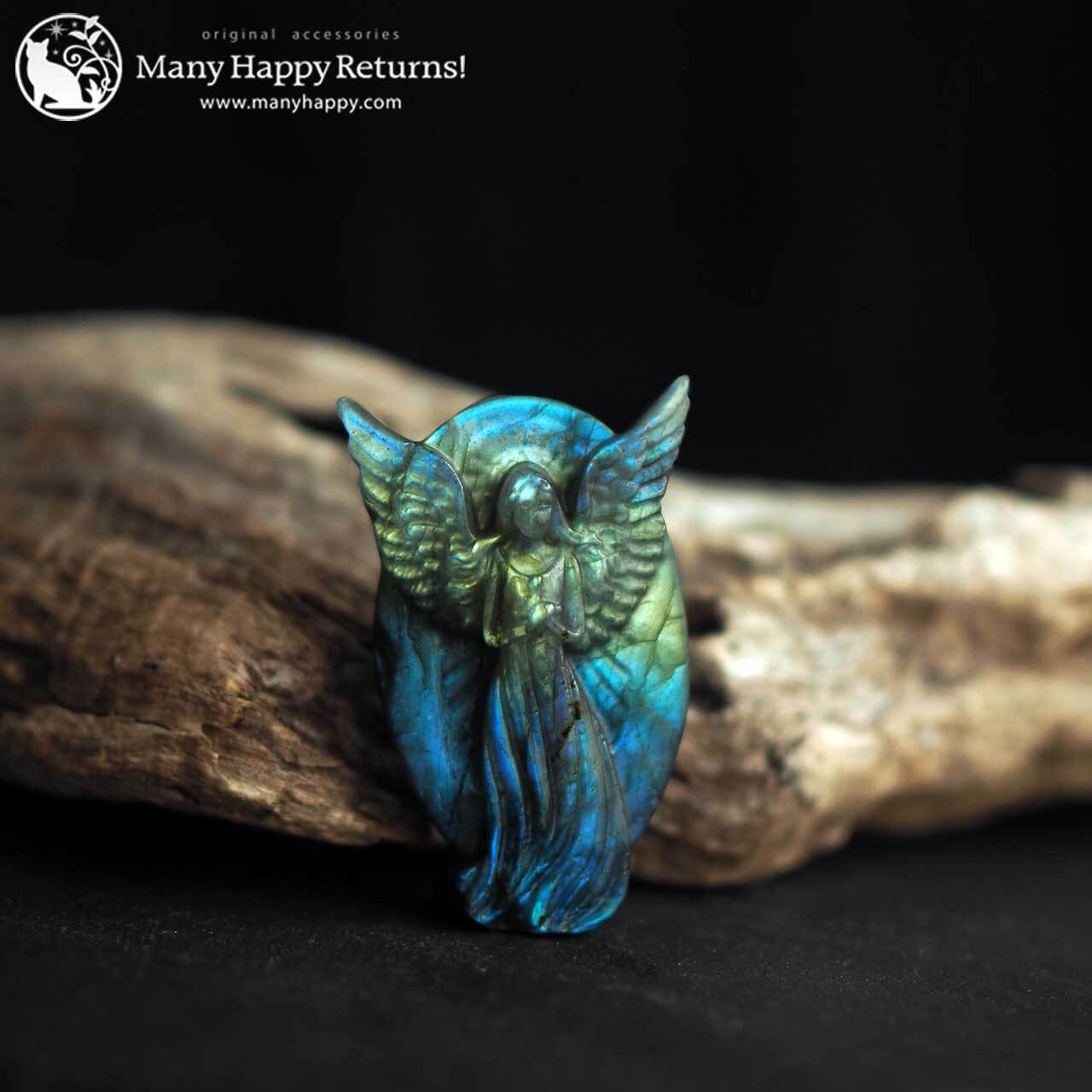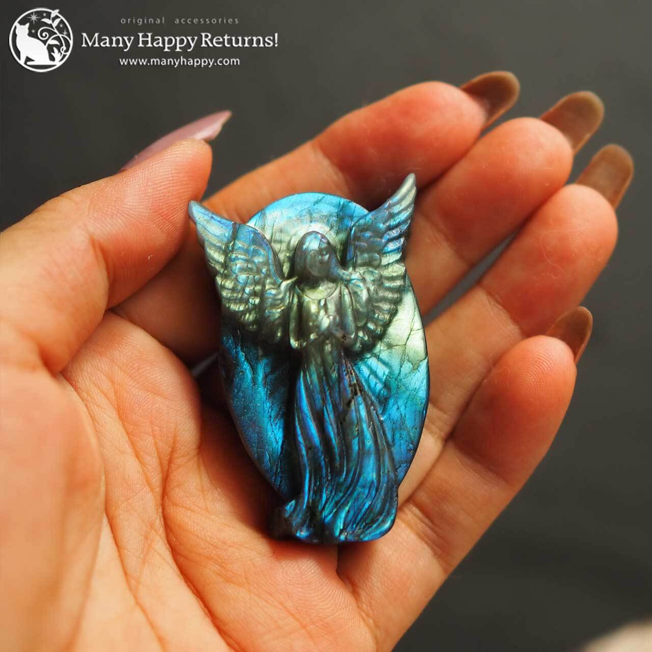 お守りとして持ち歩いていただけるラブラドライトのエンジェルカービング。