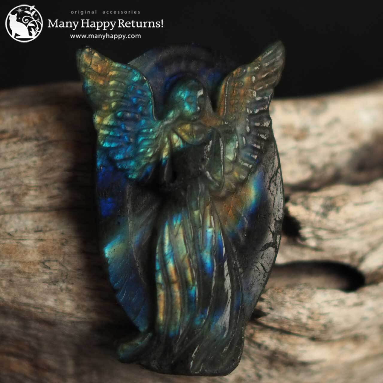 お守りとして持ち歩いていただけるラブラドライトのエンジェルカービング。