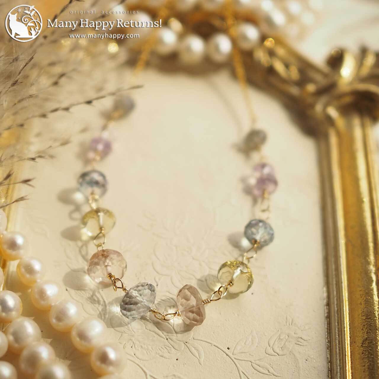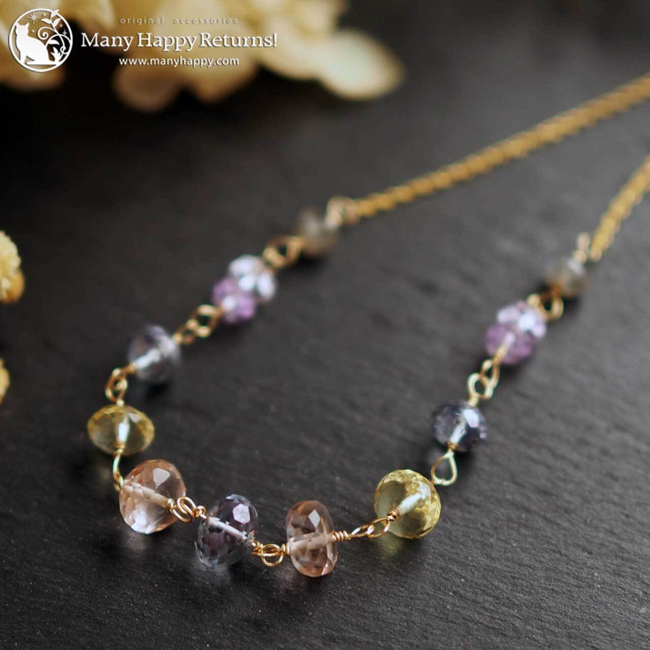 n-3717 トパーズファセット☆ほうせきばこ☆K14GFネックレス
