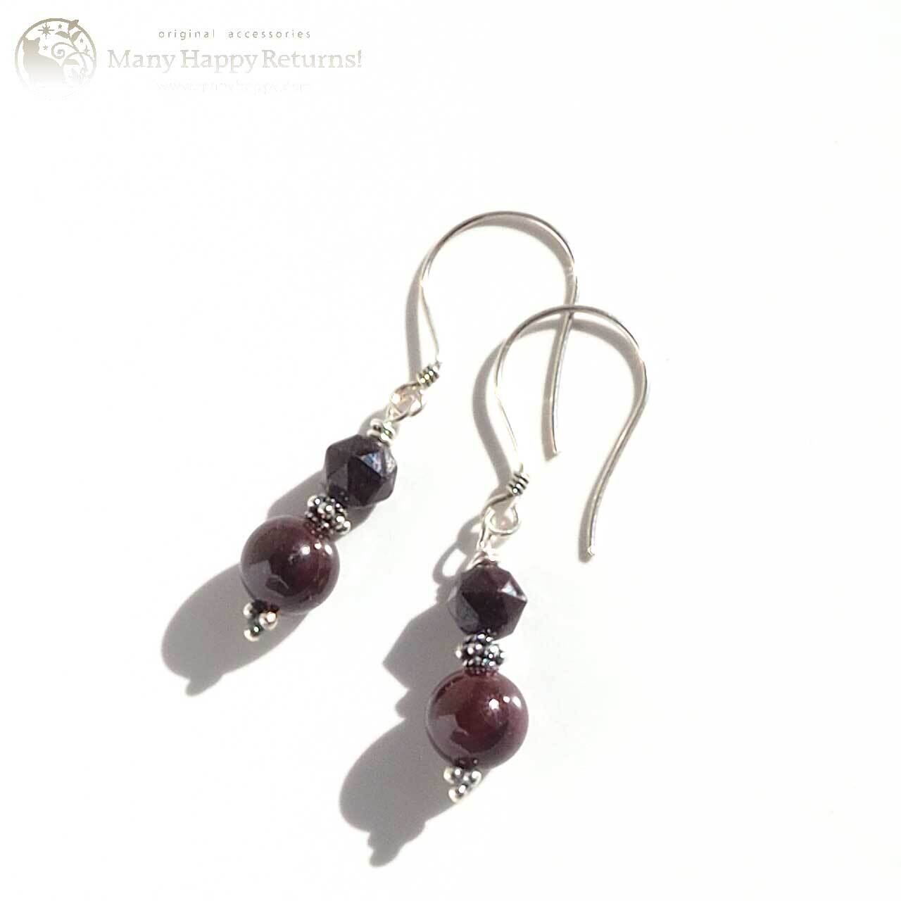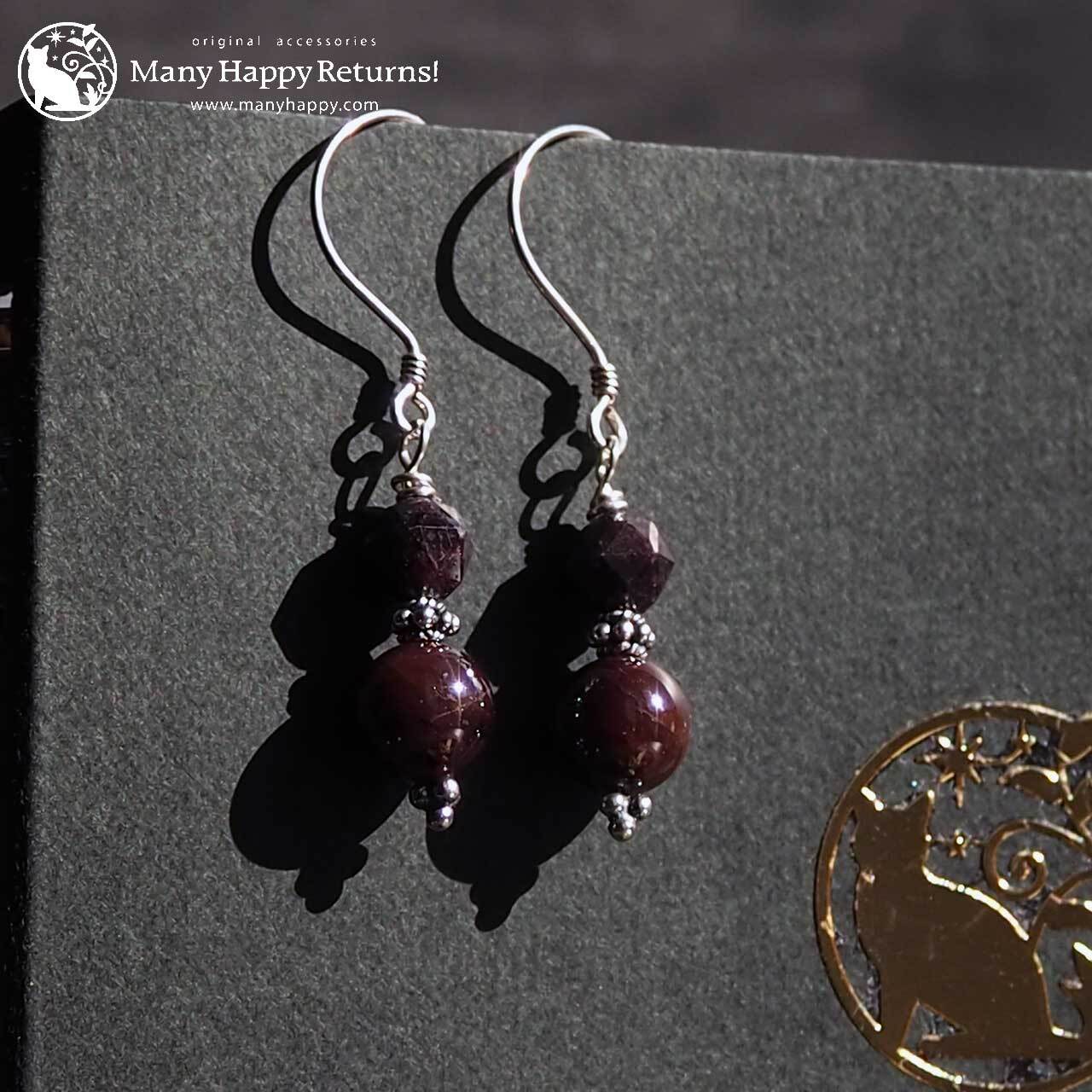 スターガーネットとファセットカットのアルマンディンガーネットのピアス。