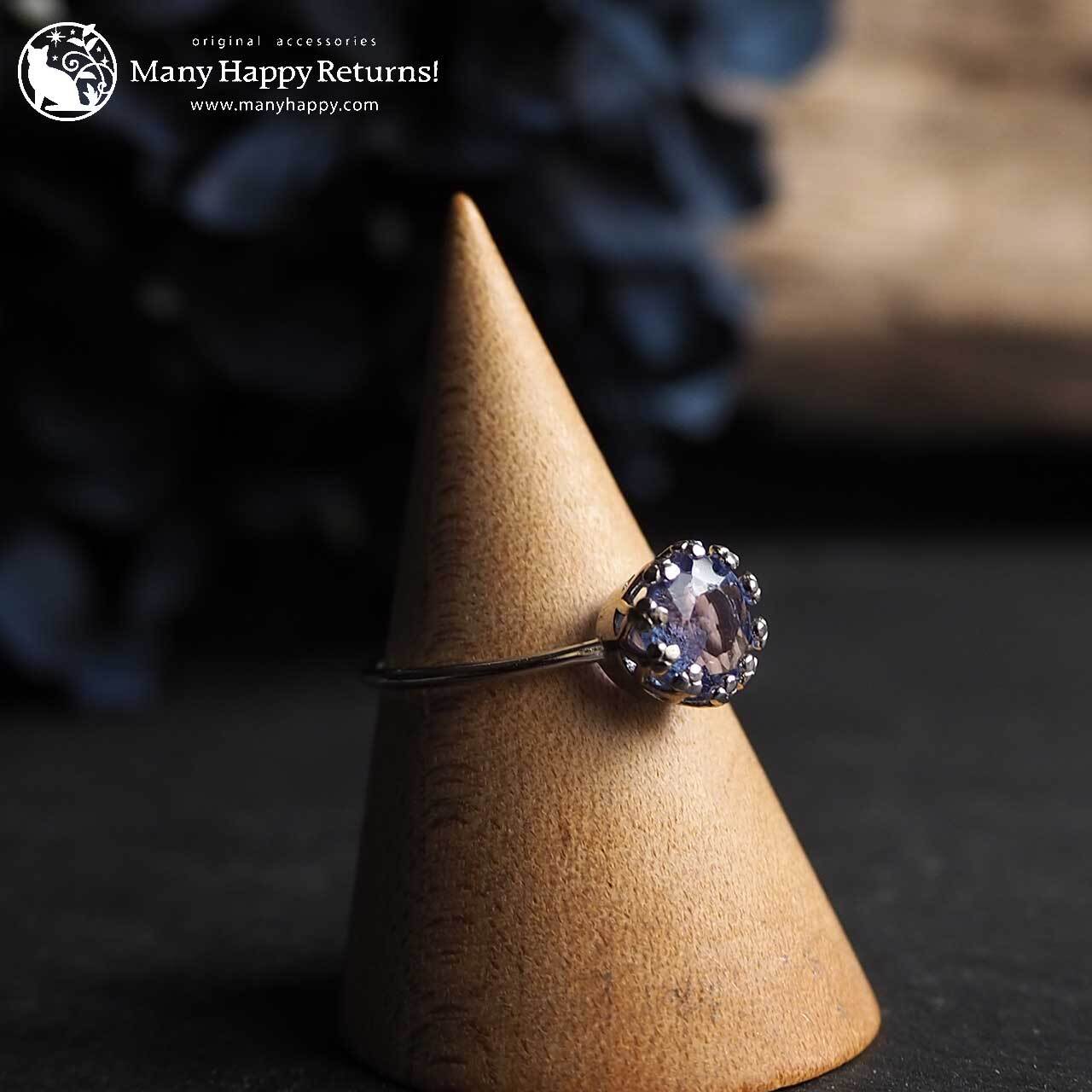 宝石質のカラーチェンジフローライトラウンドブリリアントルースを使ったリング。