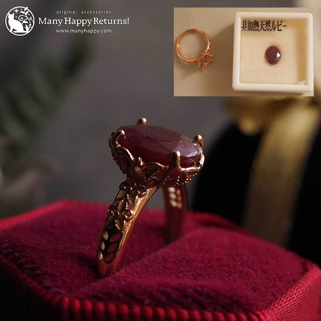大粒の非加熱ルビールースを使ったリング。
