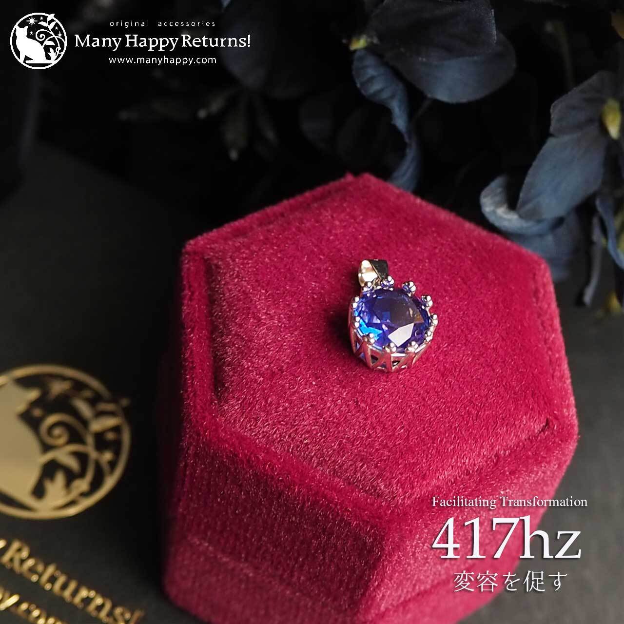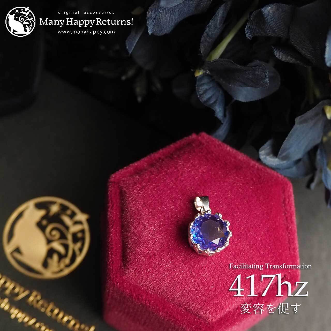 s-1 変化を促す417hz☆隠岐ブルークリスタルラウンドブリリアント☆周波数ジュエリー☆SV925ペンダントトップ OUTLET