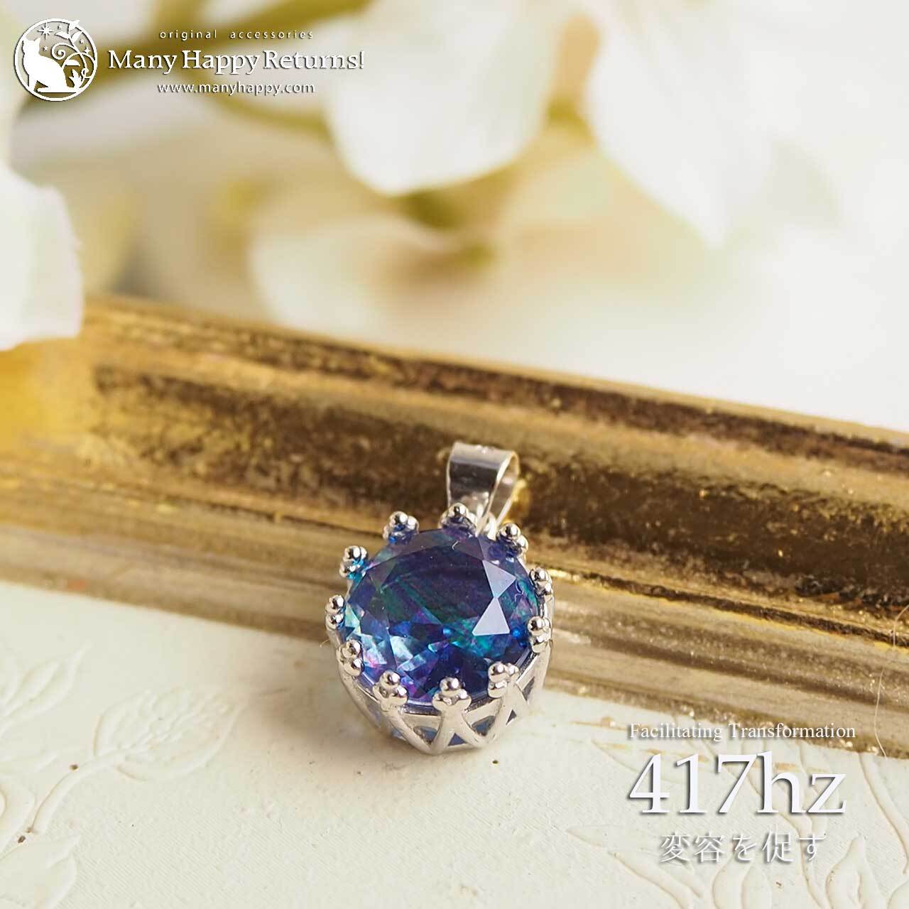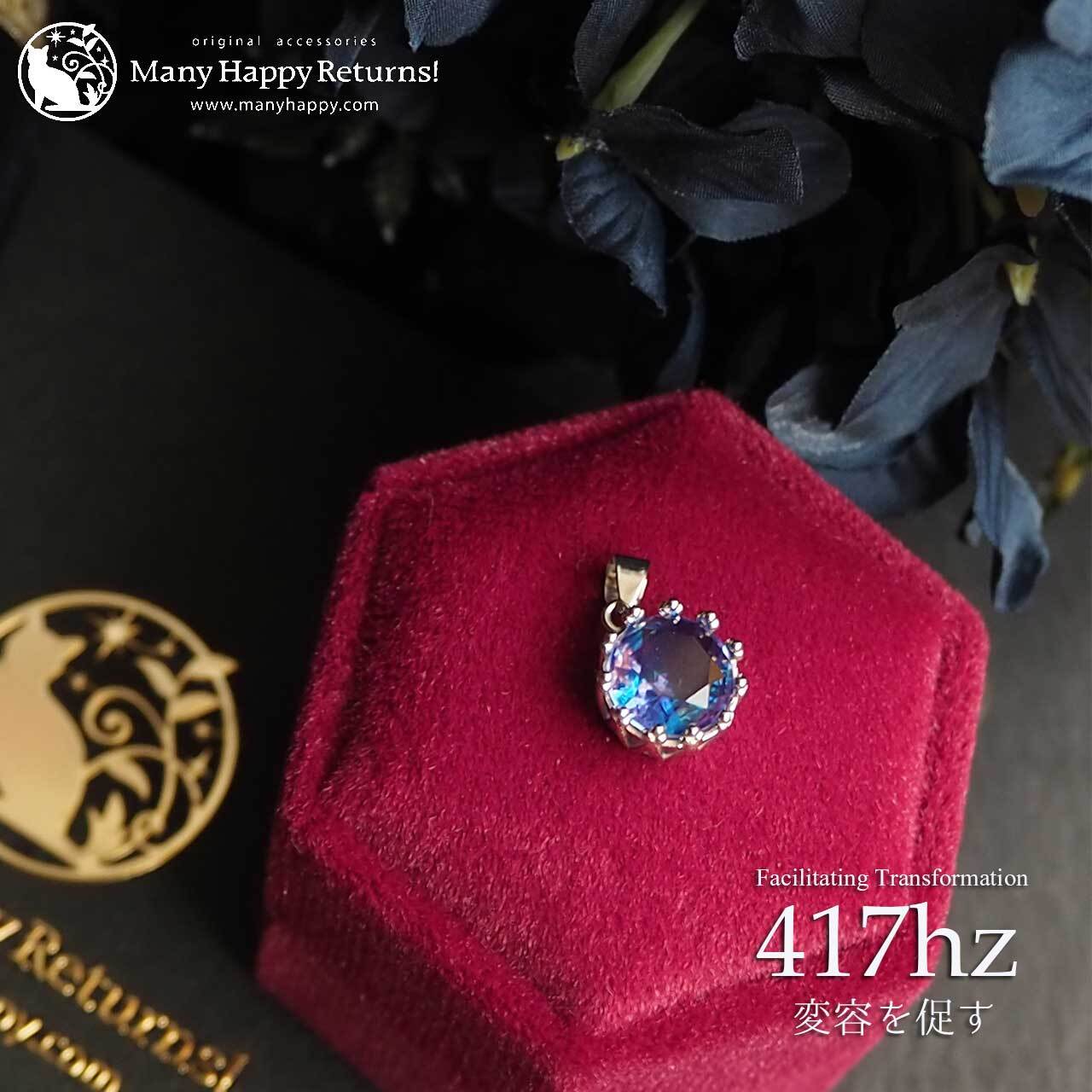 s-3 変化を促す417hz☆隠岐ブルークリスタルラウンドブリリアント☆周波数ジュエリー☆SV925ペンダントトップ