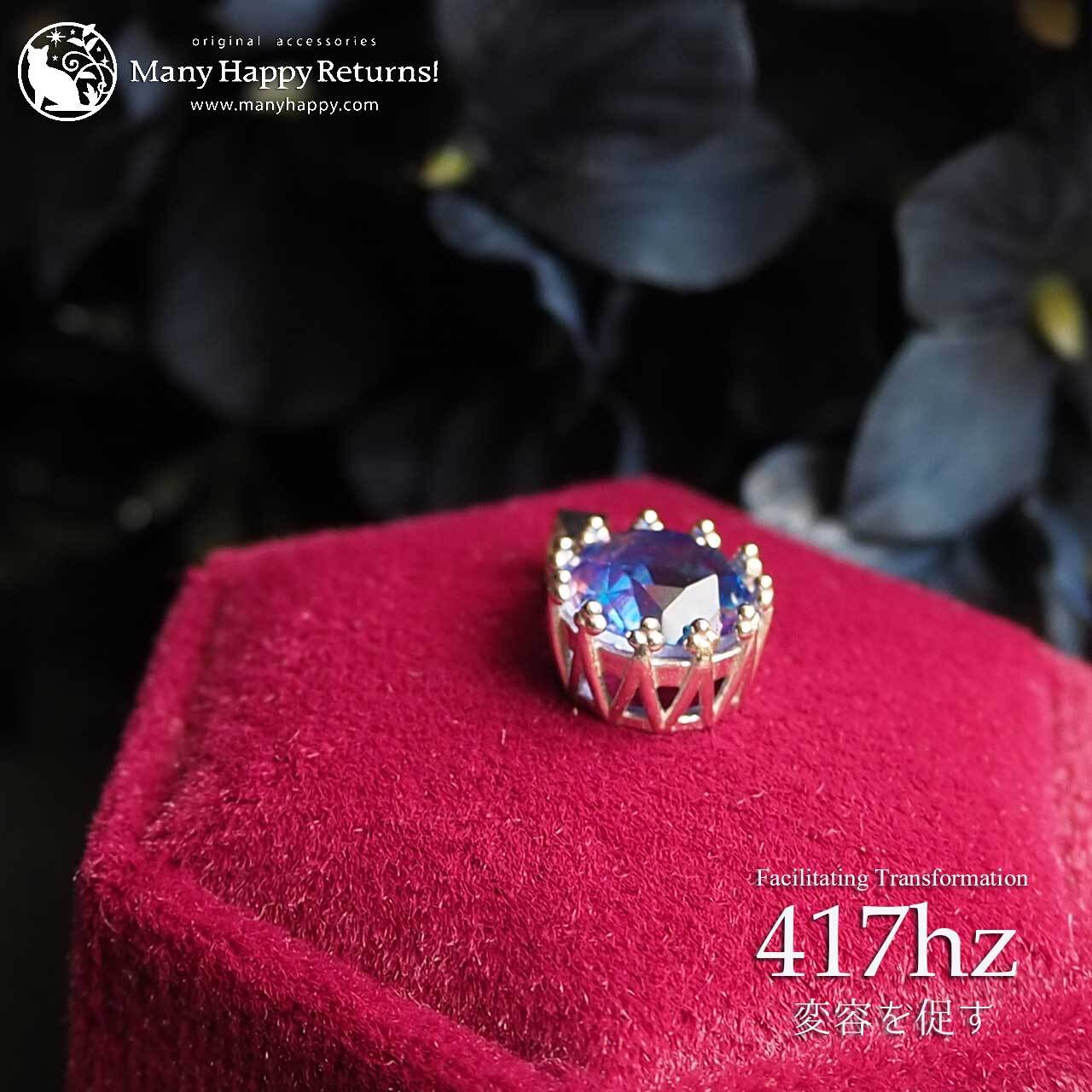 s-5 変化を促す417hz☆隠岐ブルークリスタルラウンドブリリアント☆周波数ジュエリー☆SV925ペンダントトップ