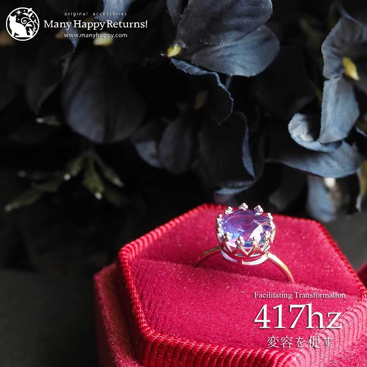 s-9 変化を促す417hz☆隠岐ブルークリスタルラウンドブリリアント☆周波数ジュエリー☆SV925リング