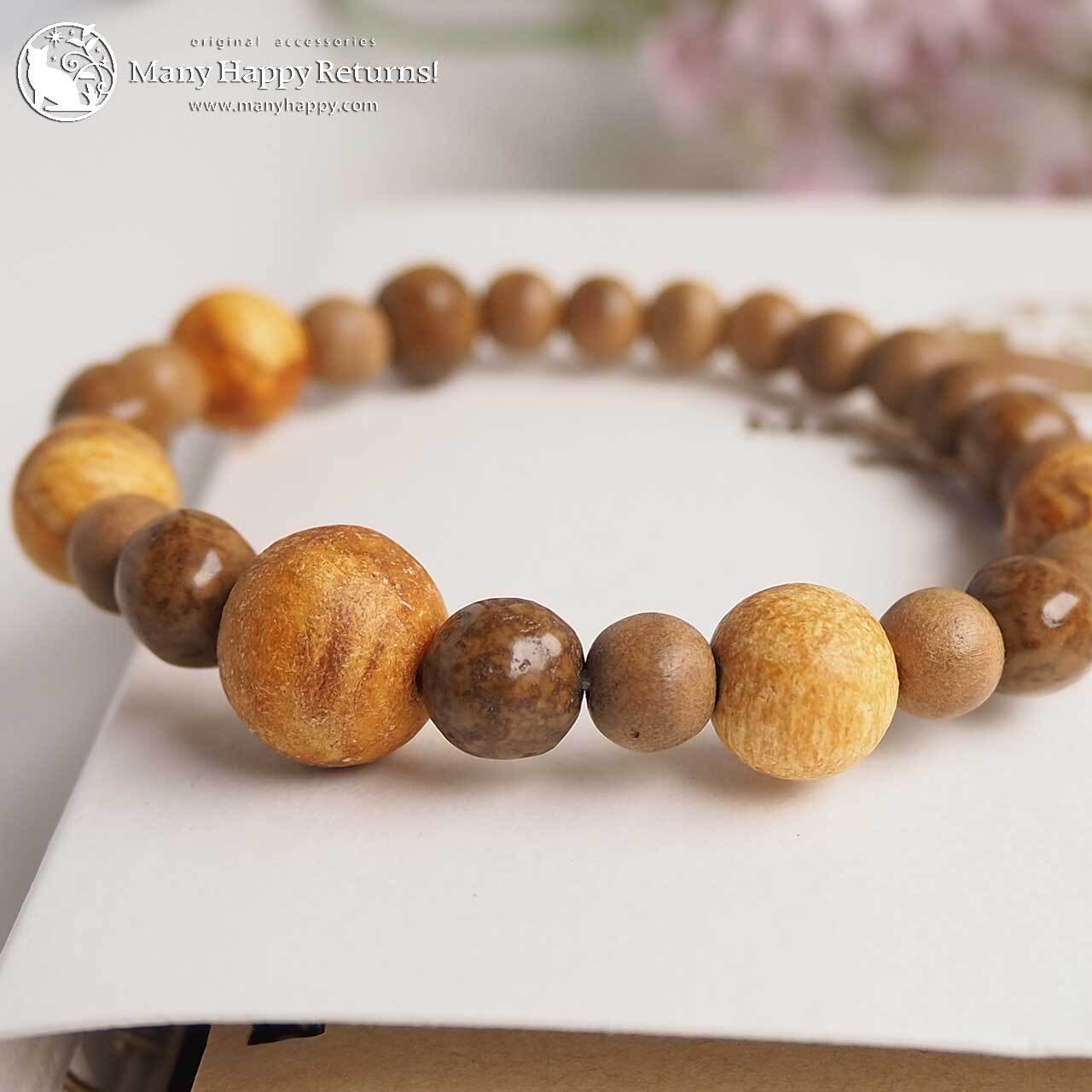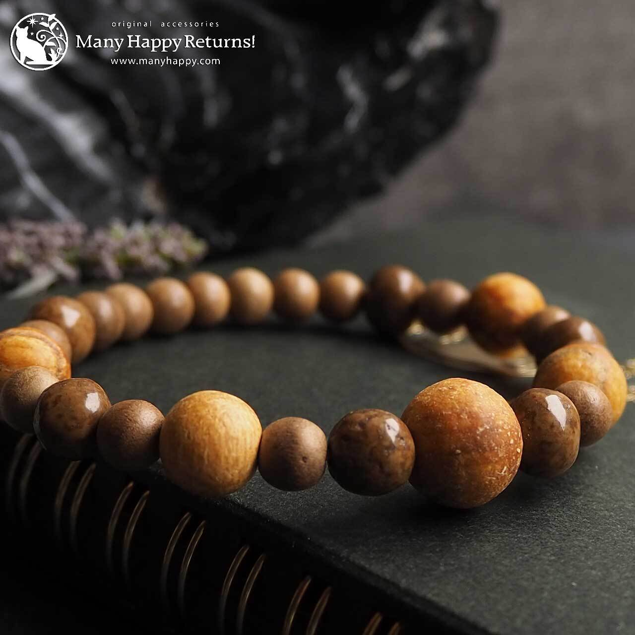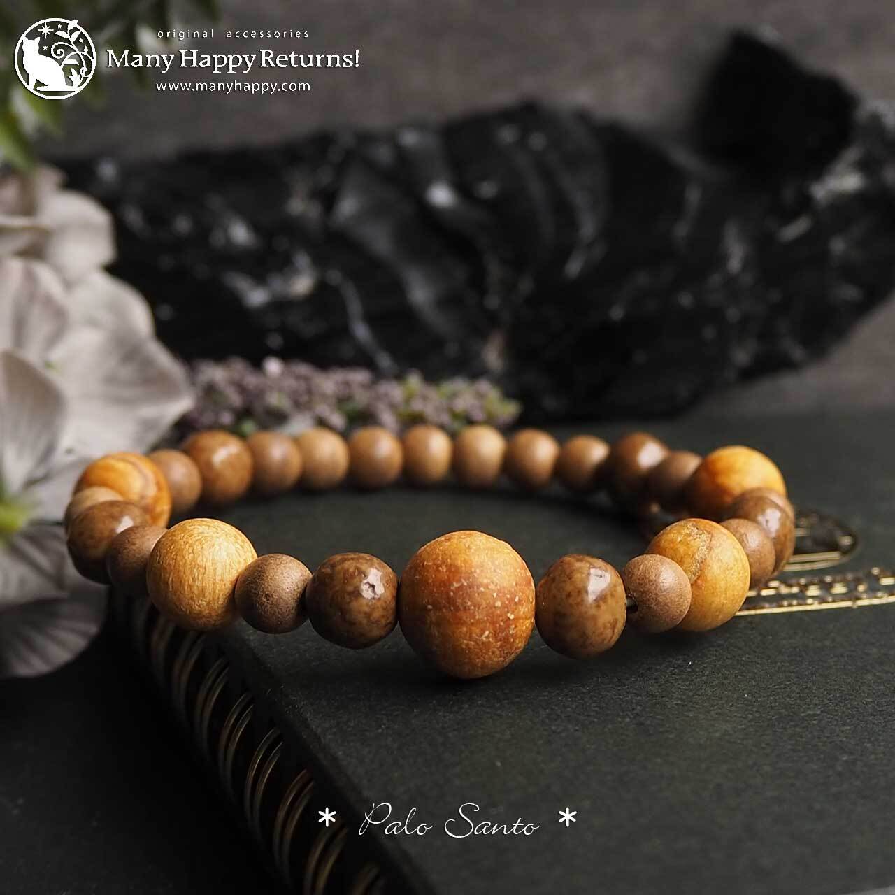 癒しの香りが楽しめる、ペルー産のパロサントを惑星のように配置したブレスレット。