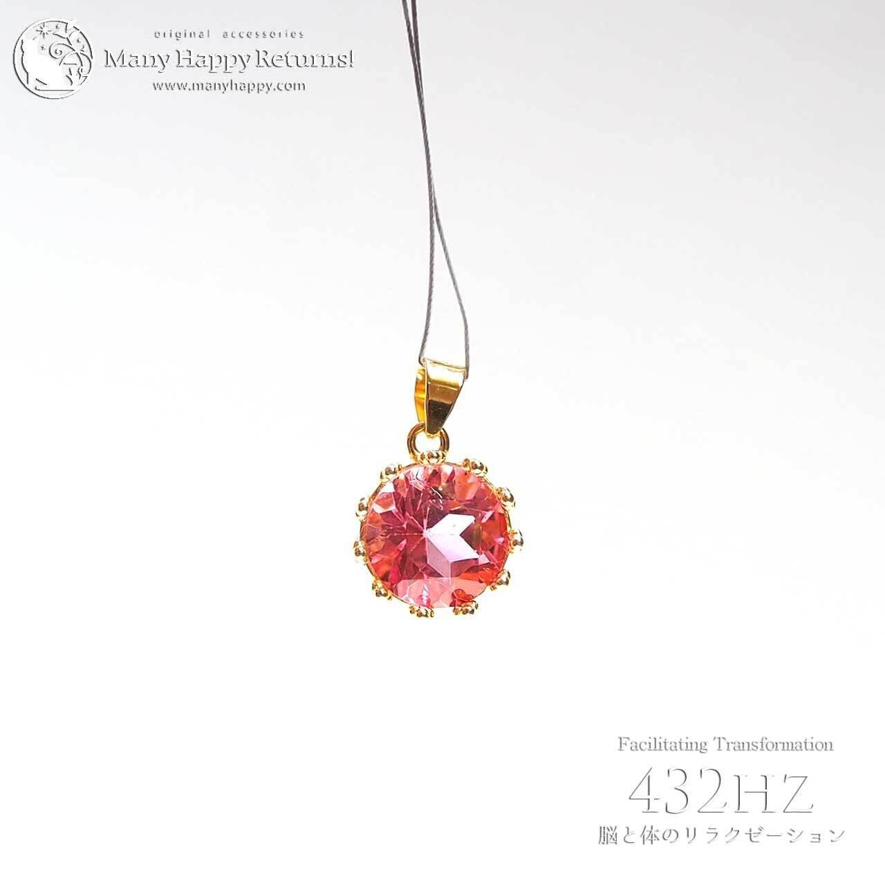 s-27 心の調和432hz☆ピンクトパーズラウンドブリリアント☆周波数ジュエリー☆K18GPペンダントトップ