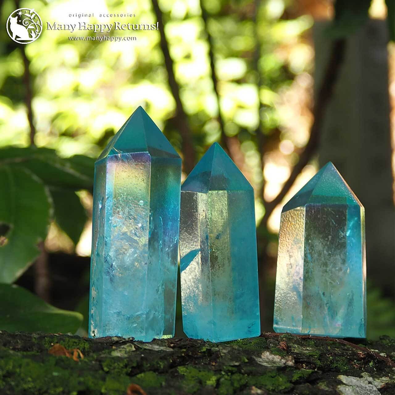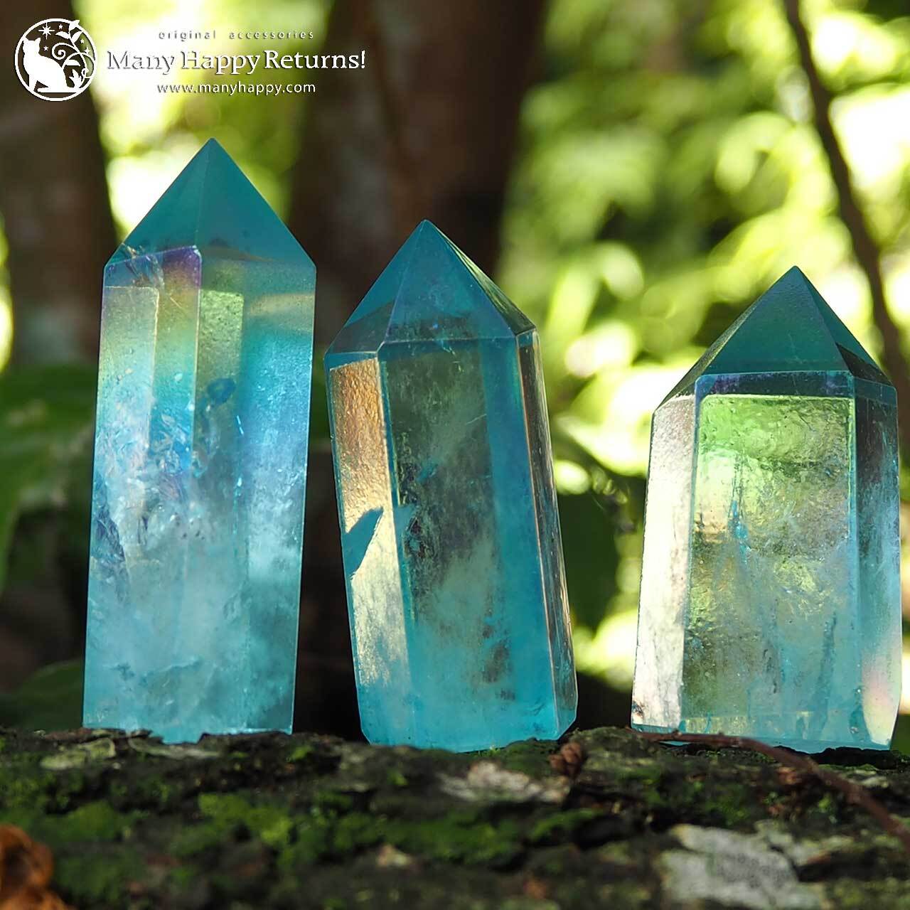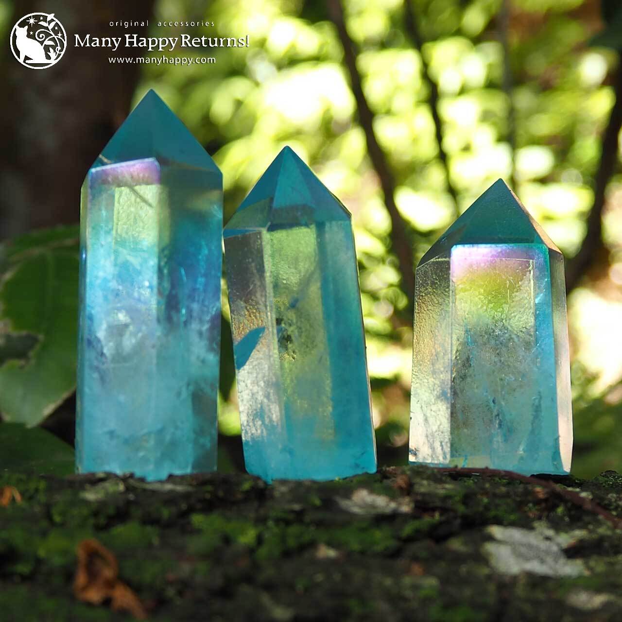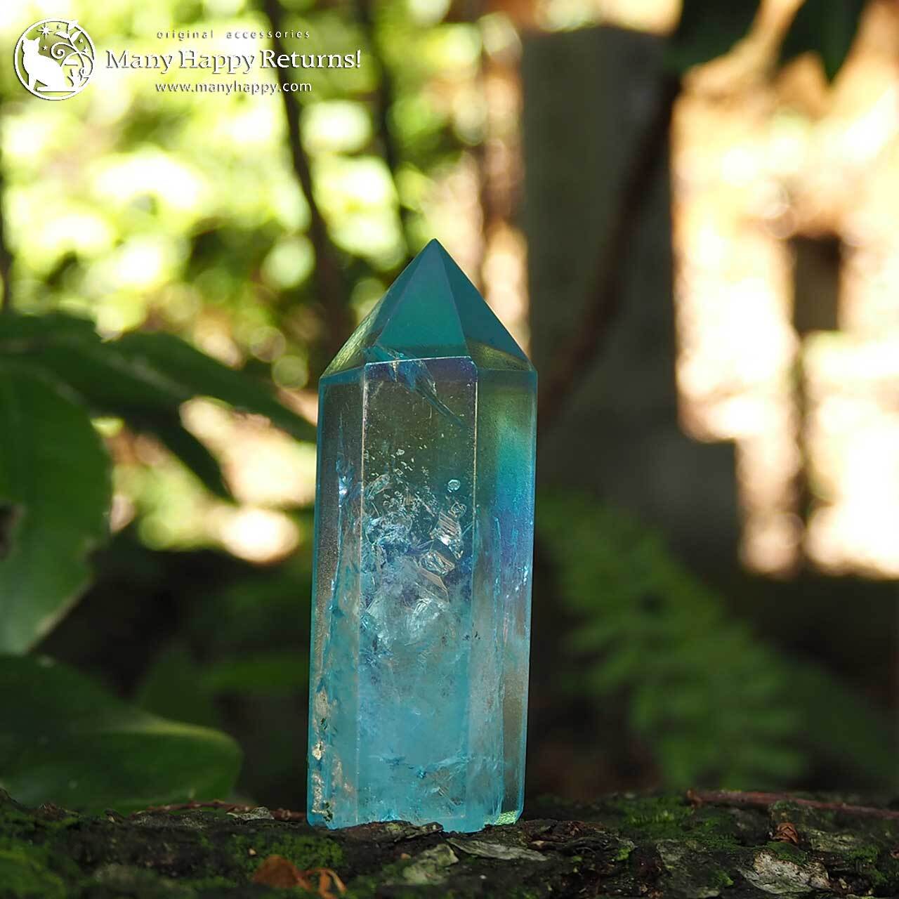 蒸発させた金属を天然水晶の表面に付着させ て作られます。