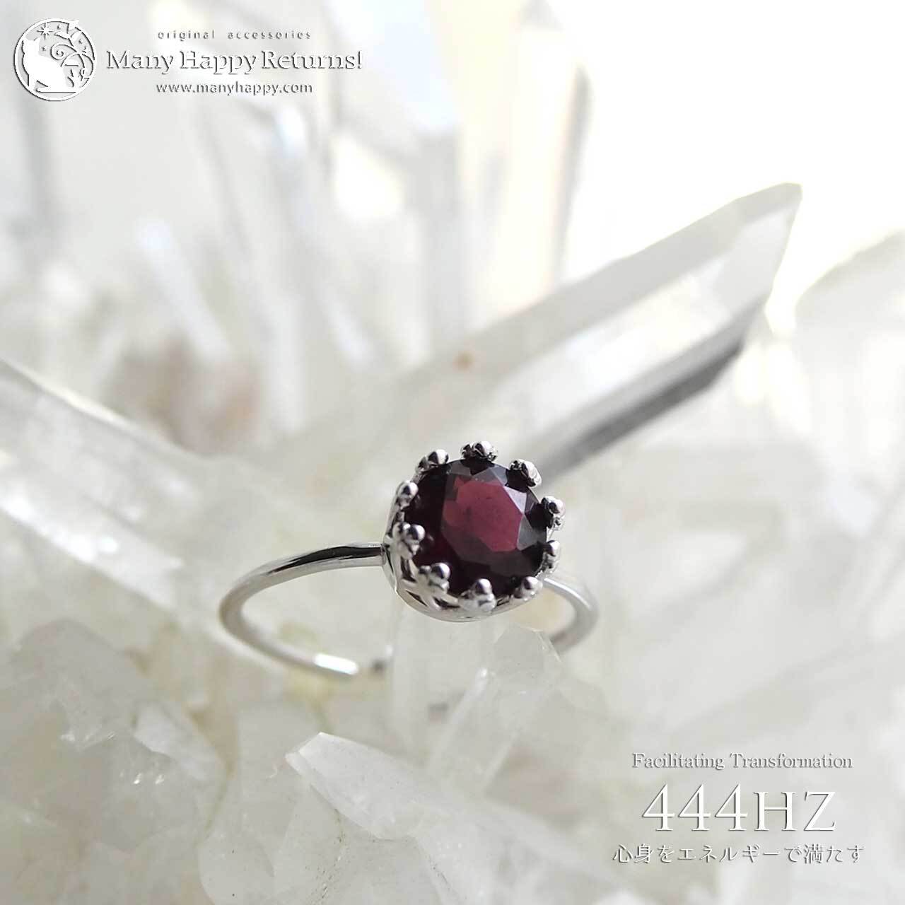 s-109 心身をエネルギーで満たす444hz☆宝石質ロードライトガーネットラウンドブリリアント☆周波数ジュエリー☆SV925リング