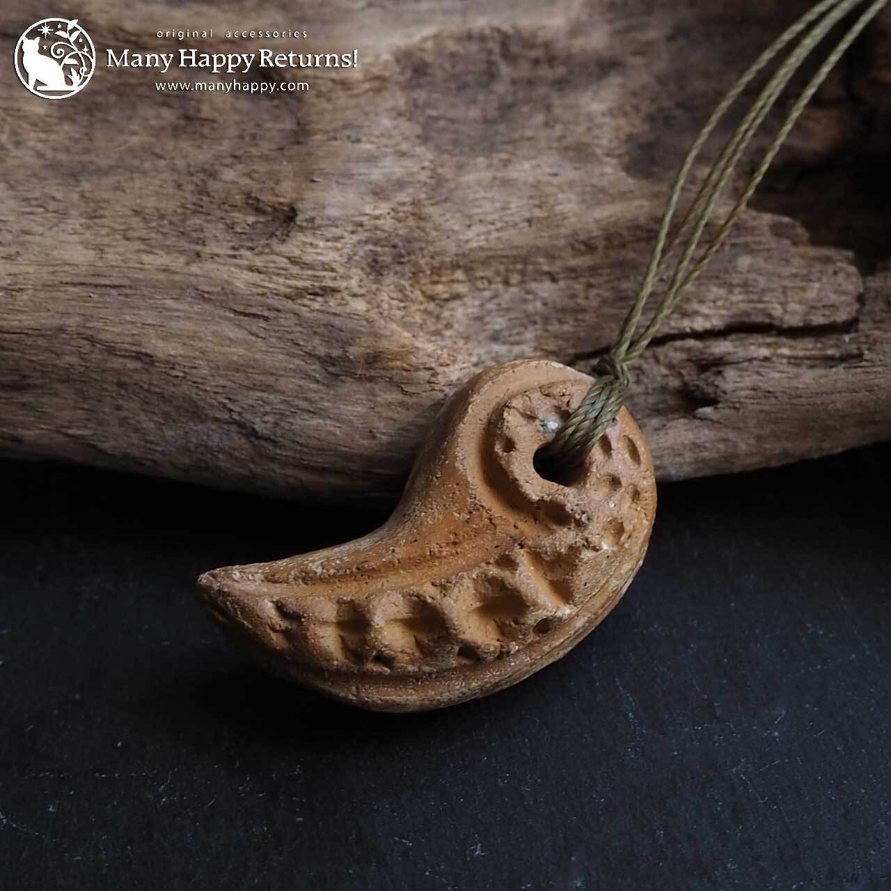 n-3758 縄文の魂に繋がる☆縄文粘土勾玉☆コードネックレス