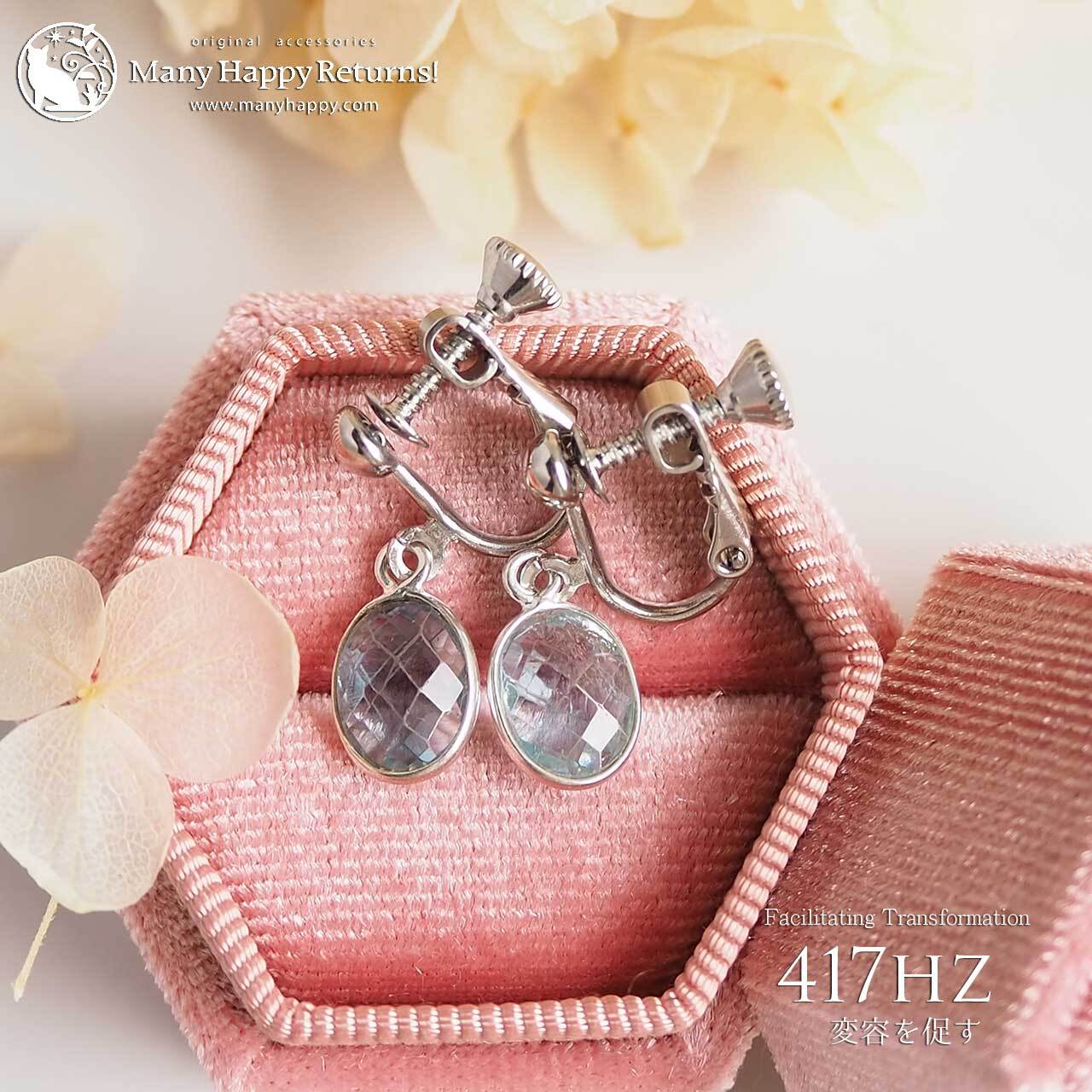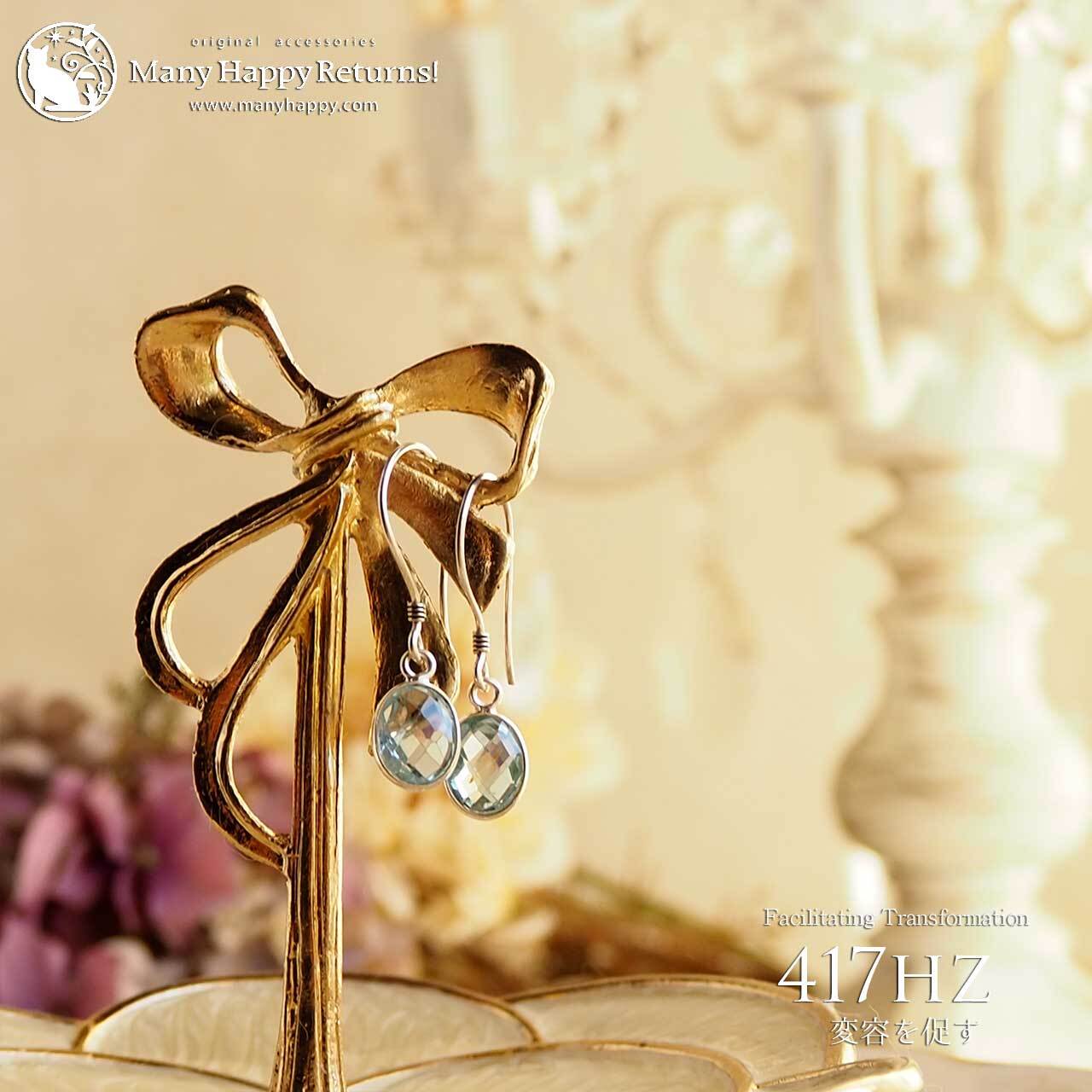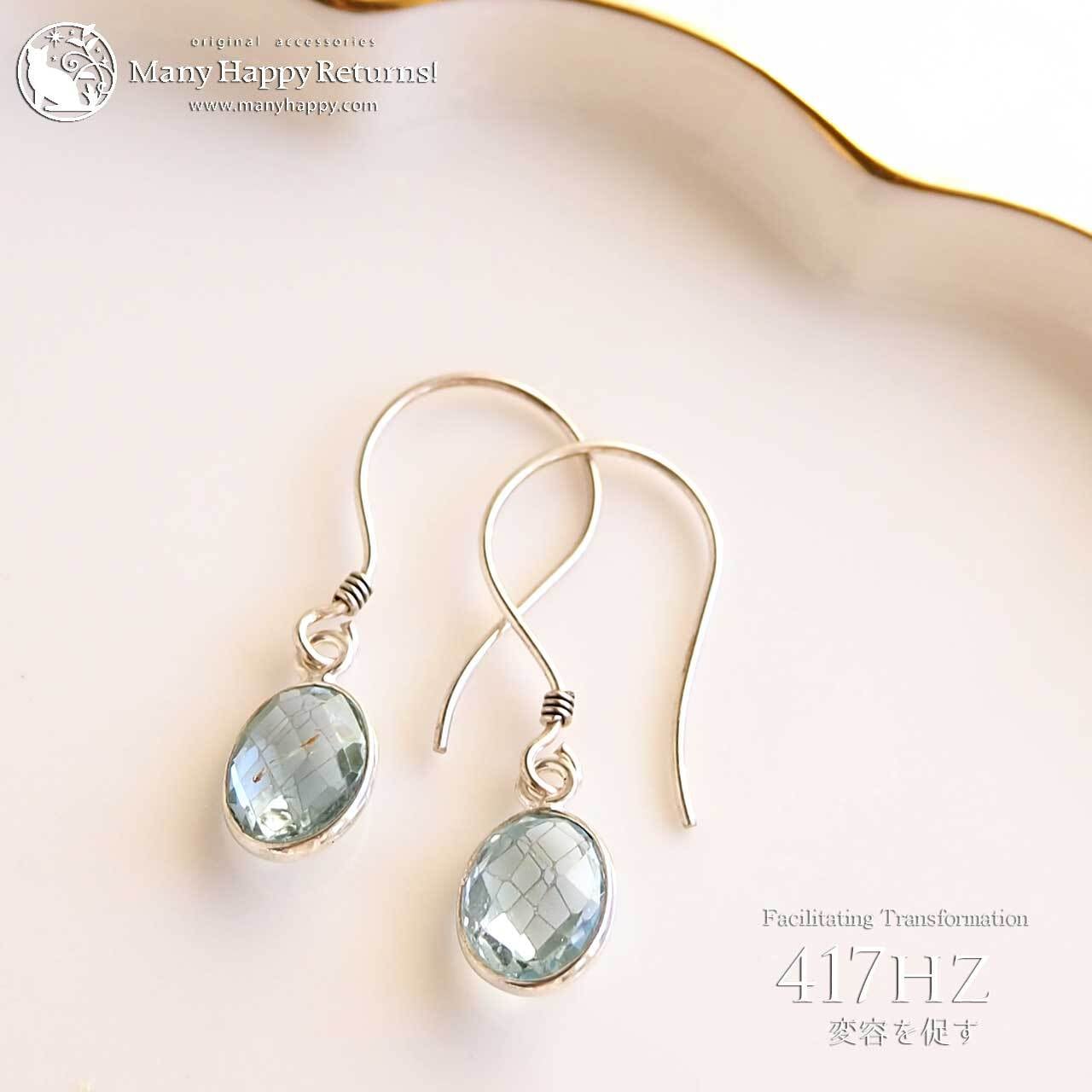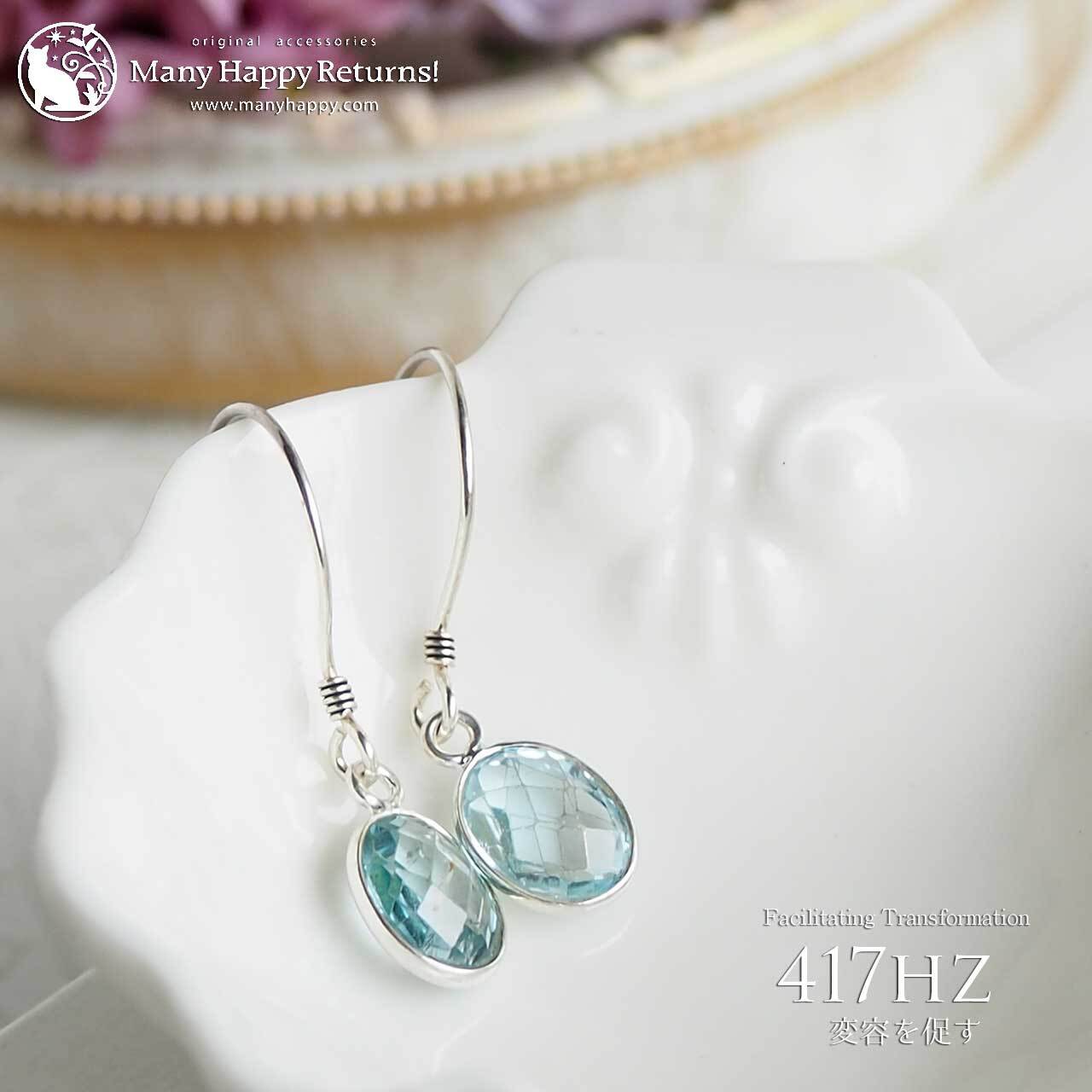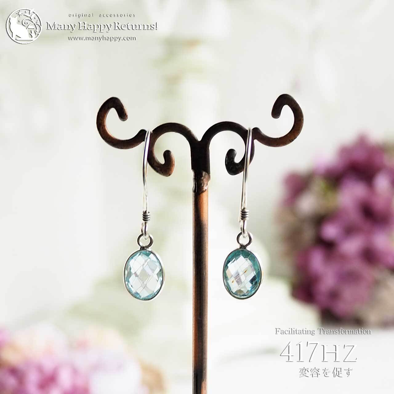 s-128 変化を促す417hz☆スカイブルートパーズオーバルファセット☆周波数ジュエリー☆SV925ピアス・イヤリング