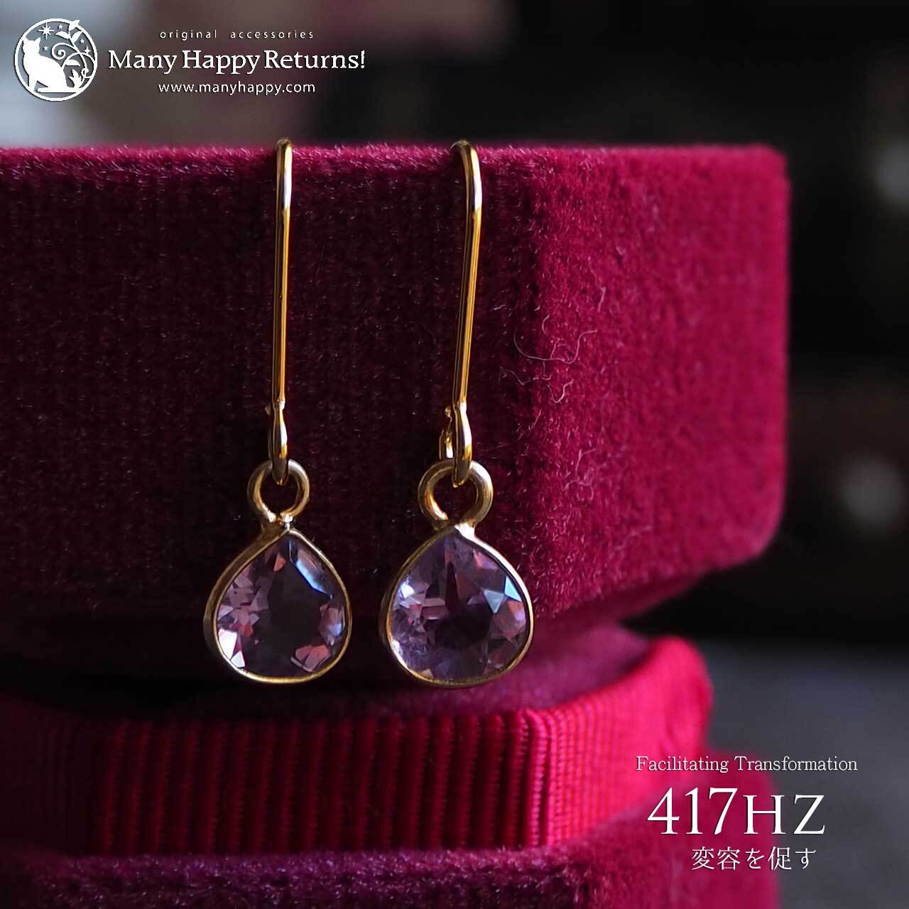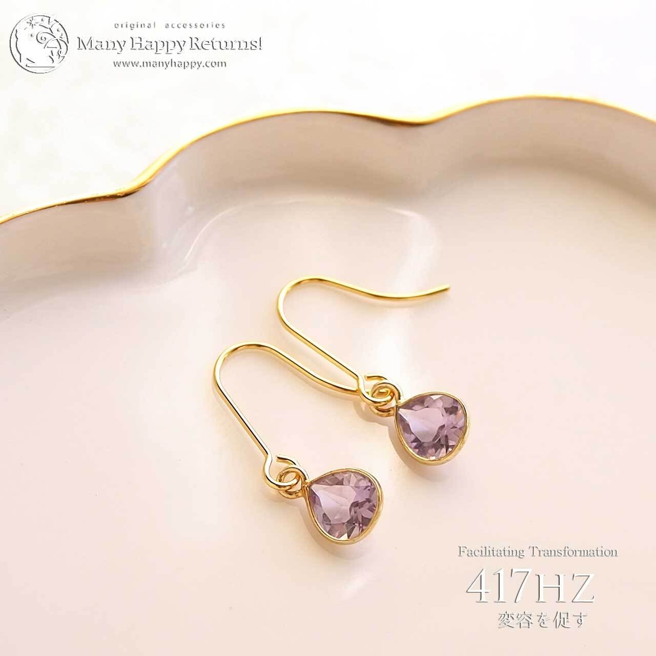 s-129 変化を促す417hz☆宝石質アメジストマロンカット☆周波数ジュエリー☆K18GPピアス・イヤリング