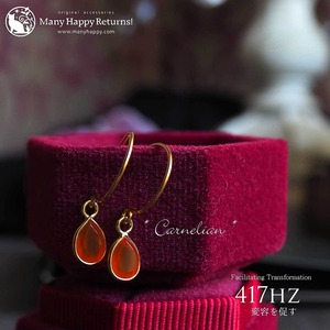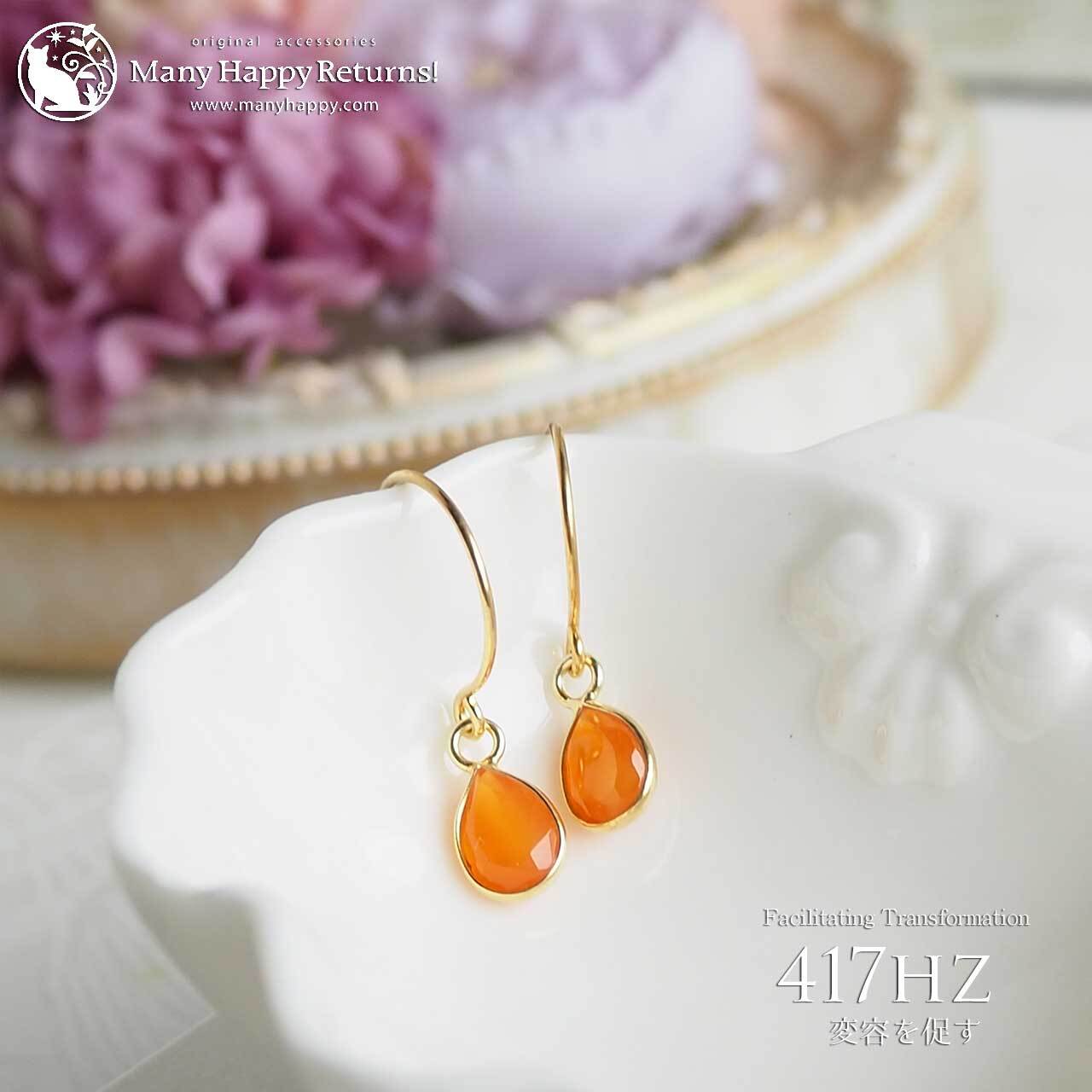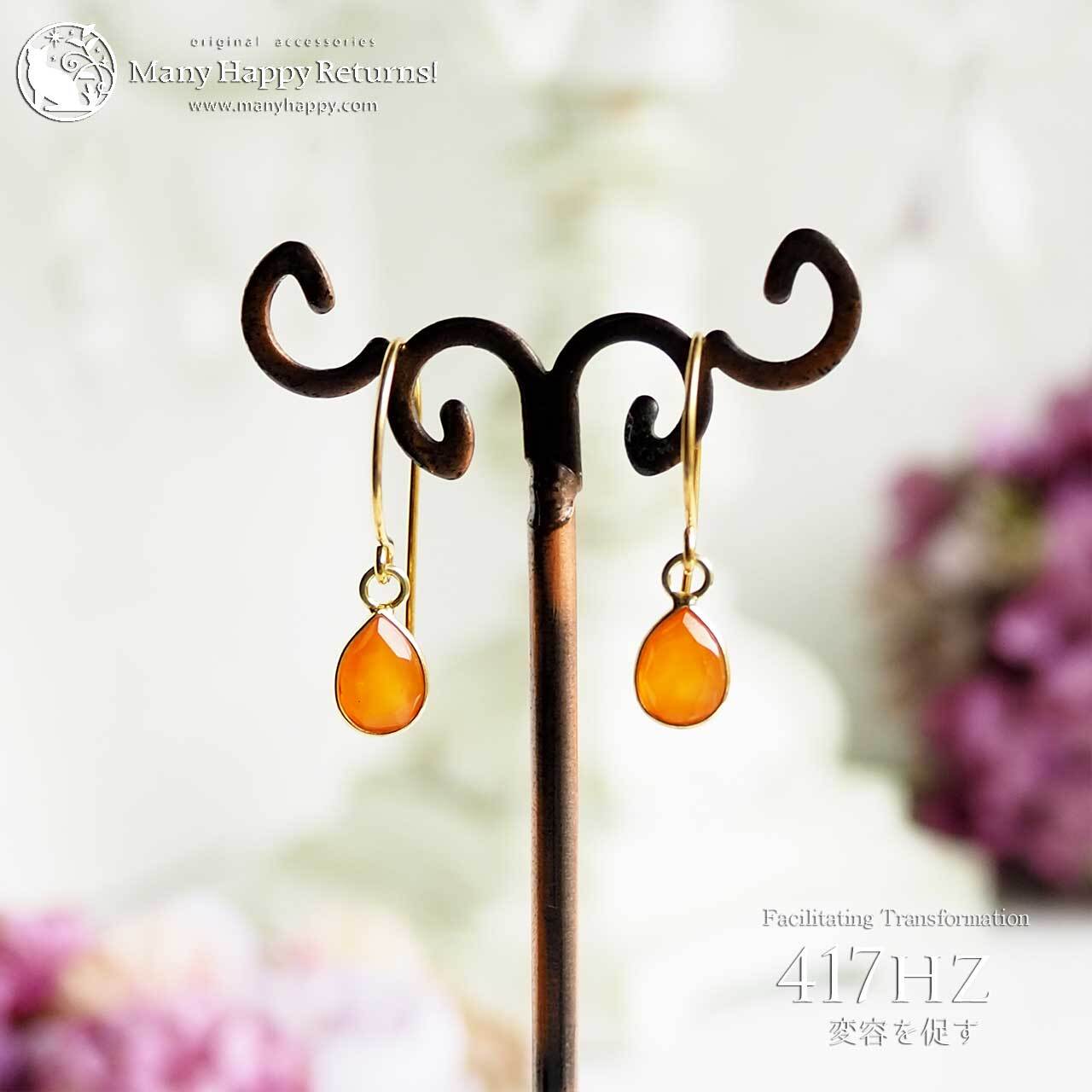 s-130 変化を促す417hz☆宝石質カーネリアンペアシェイプファセットカット☆周波数ジュエリー☆K18GPピアス・イヤリング