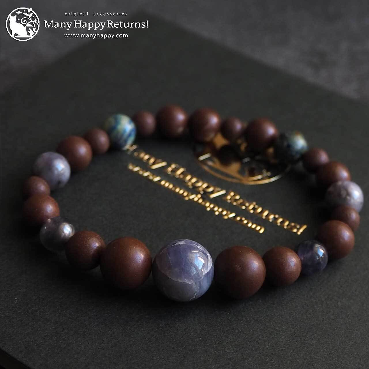 ba-7189 アリゾナヴァイオレットクォーツ&セドナライト&アイオライトサンストーン☆ストレッチブレス