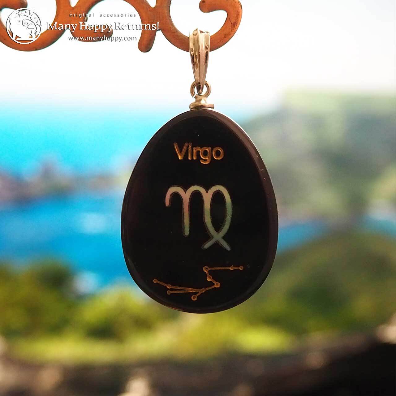 n-3771 隠岐のかけら☆隠岐アバロンシェルと隠岐オブシディアン☆ゾディアックペンダントトップ*乙女座