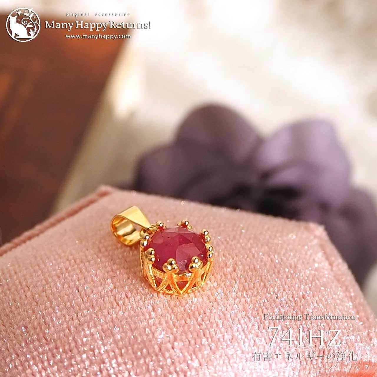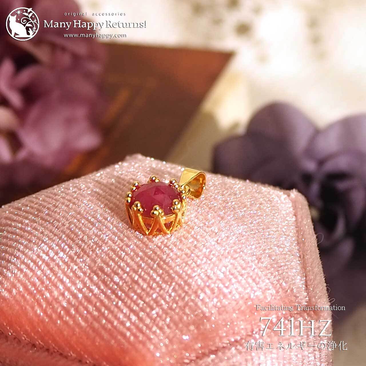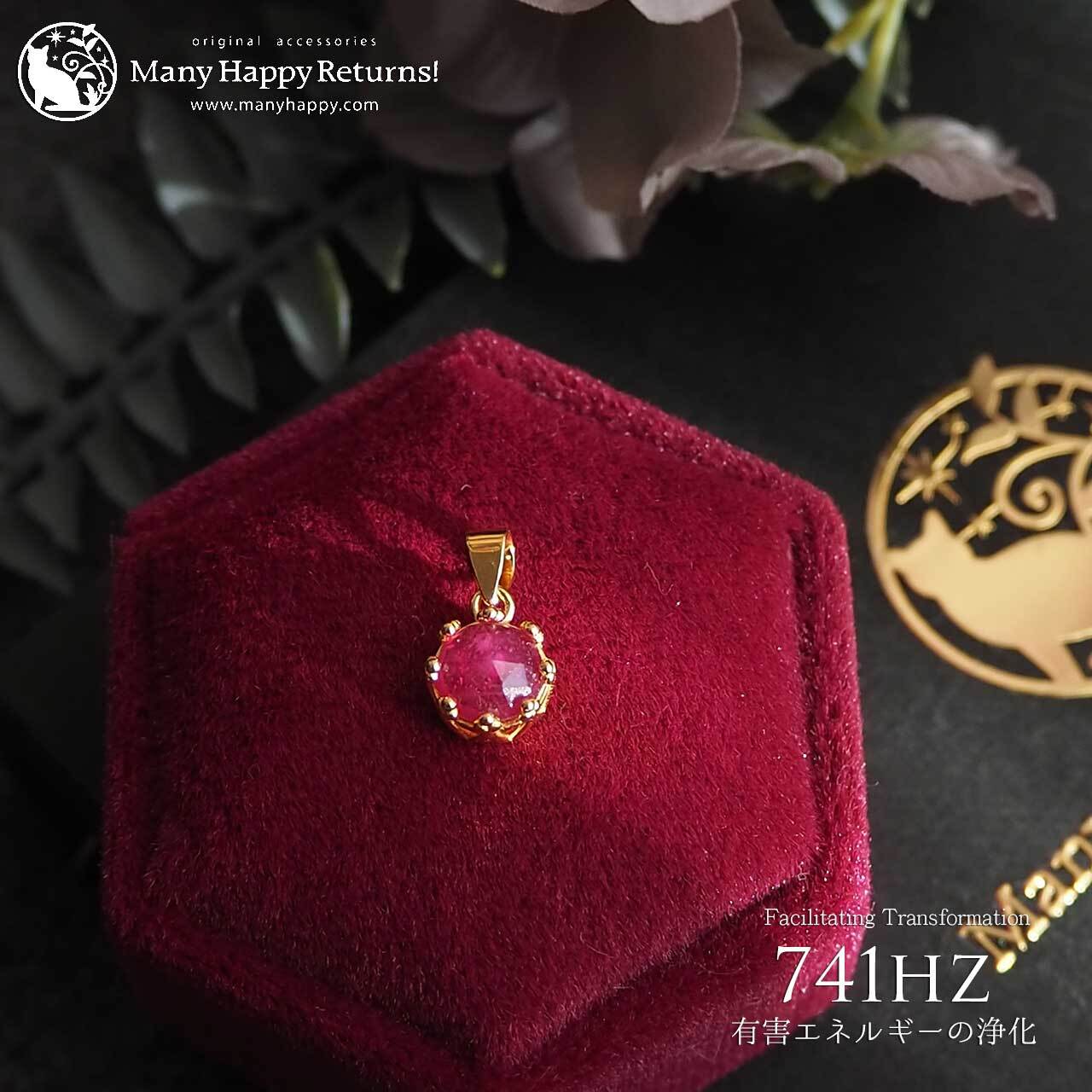 s-187 ネガティブなエネルギーの解放741hz☆宝石質ルビーローズカット☆周波数ジュエリー☆K18GPペンダントトップ