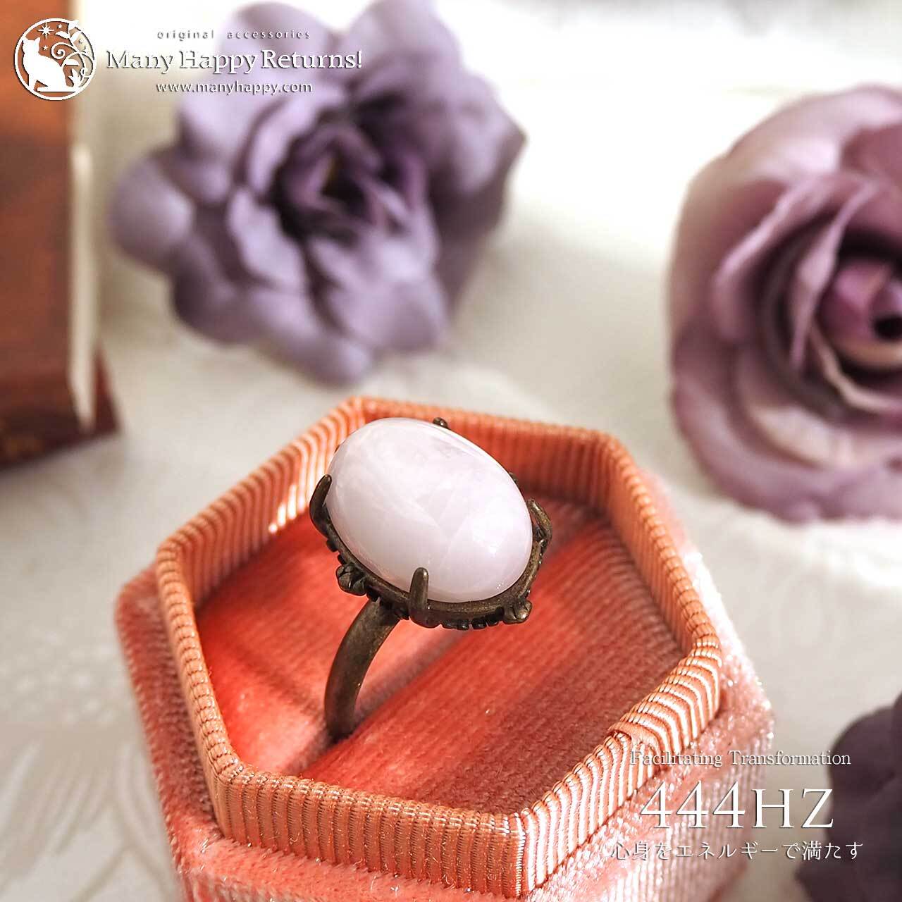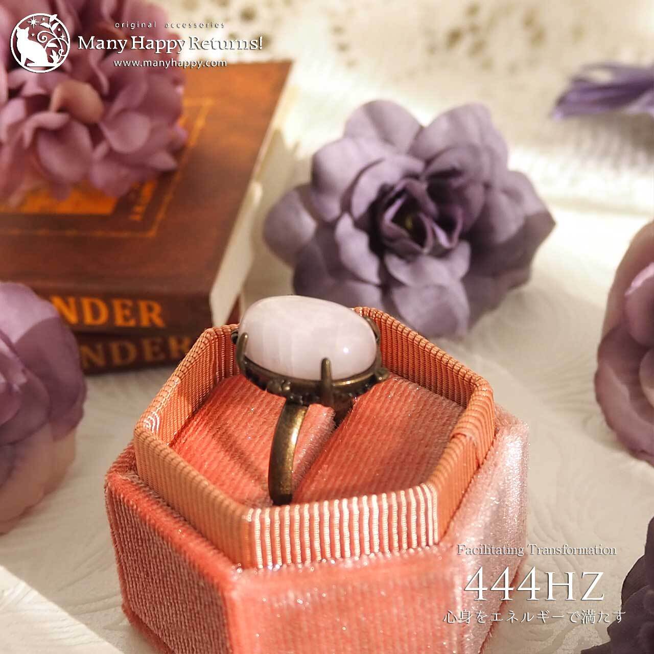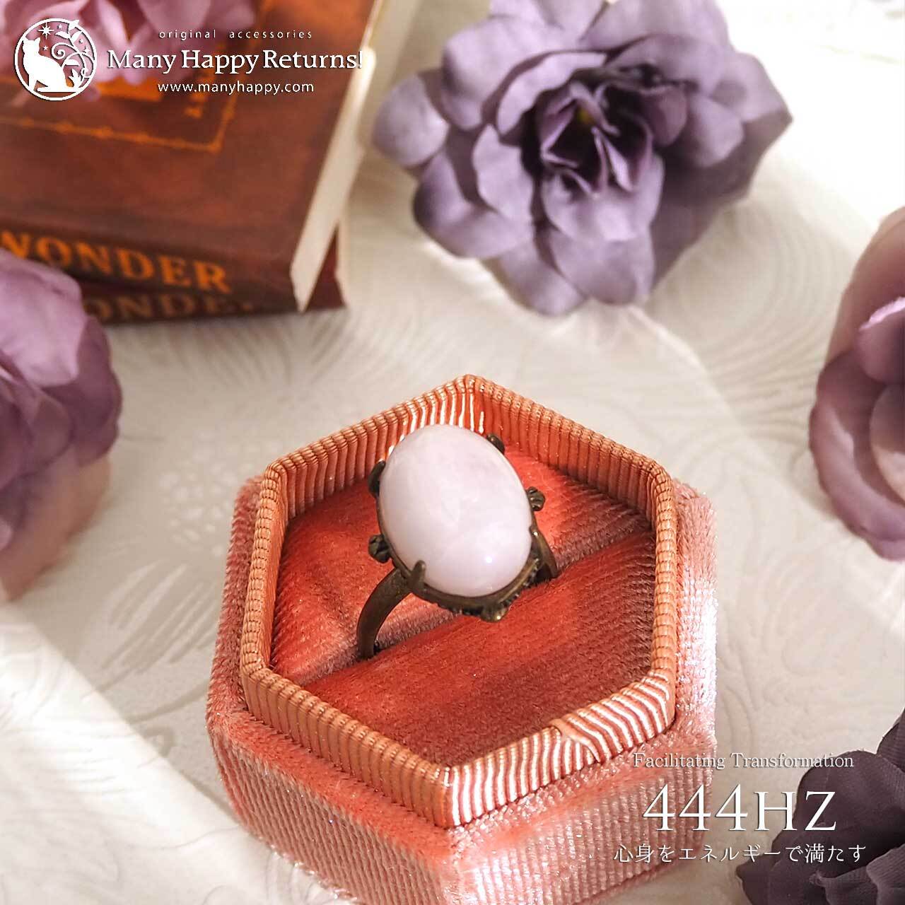 s-182 心身をエネルギーで満たす444hz☆クンツァイトカボション☆周波数ジュエリー☆リング