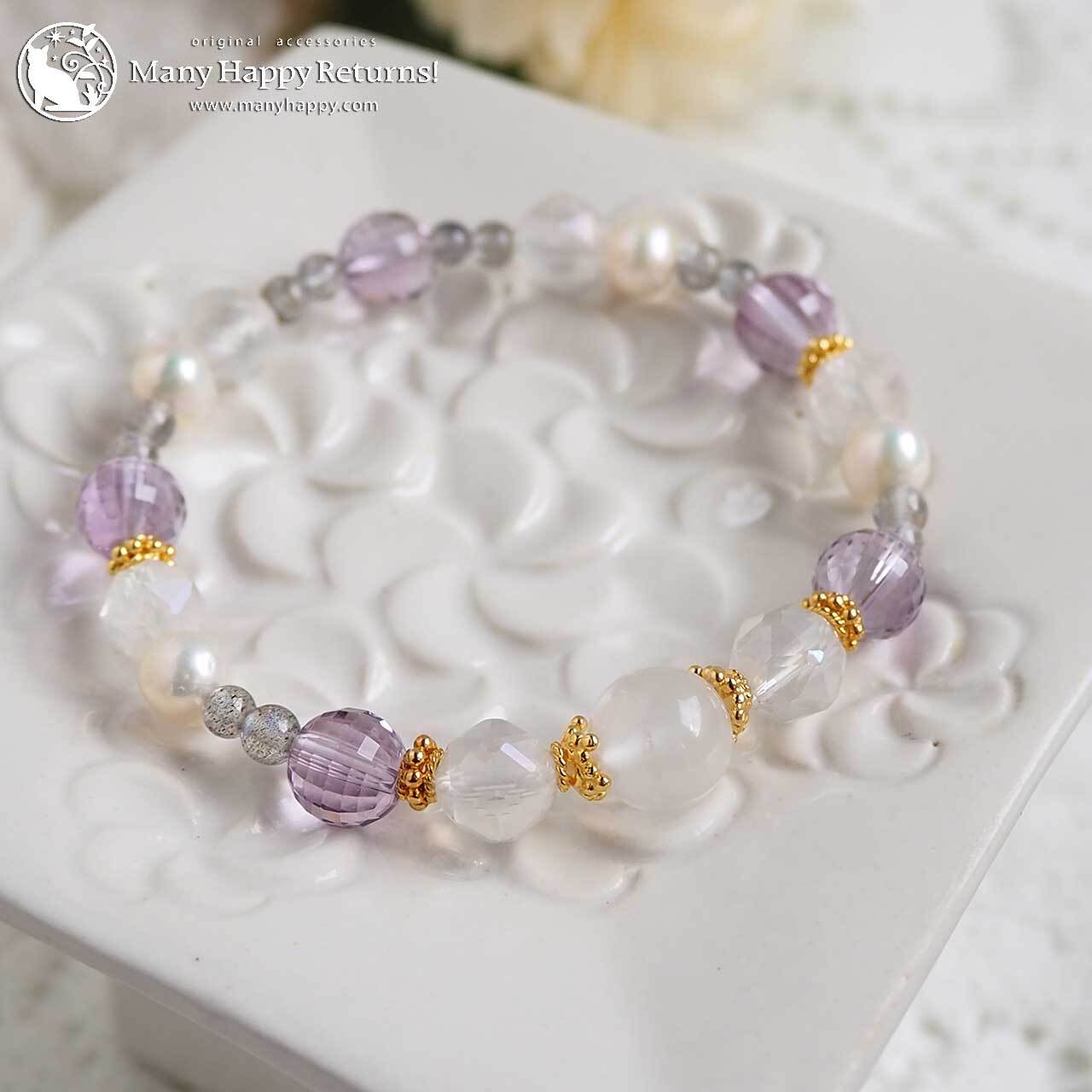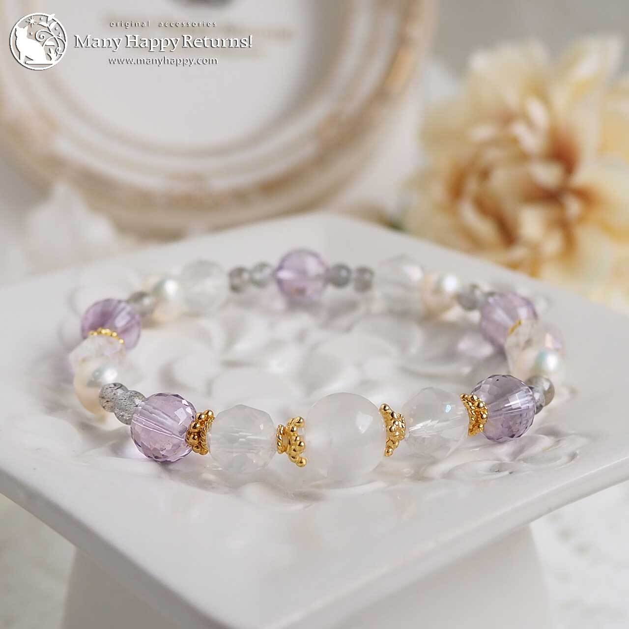 インにホワイトアンデシン、カットの美しいエンジェルオーラスターカットに、宝石質のアメジストを使ったブレス。